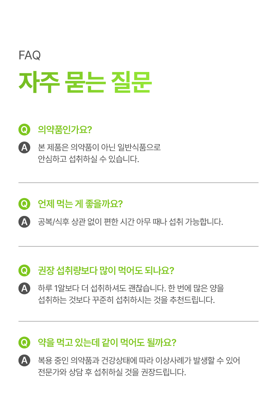 질병이 있거나 의심되는 경우 반드시 전문의 상담 후 섭취하는 것을 권장드립니다. 본 제품은 질병의 예방 및 치료를 위한 의약품이 아닙니다.