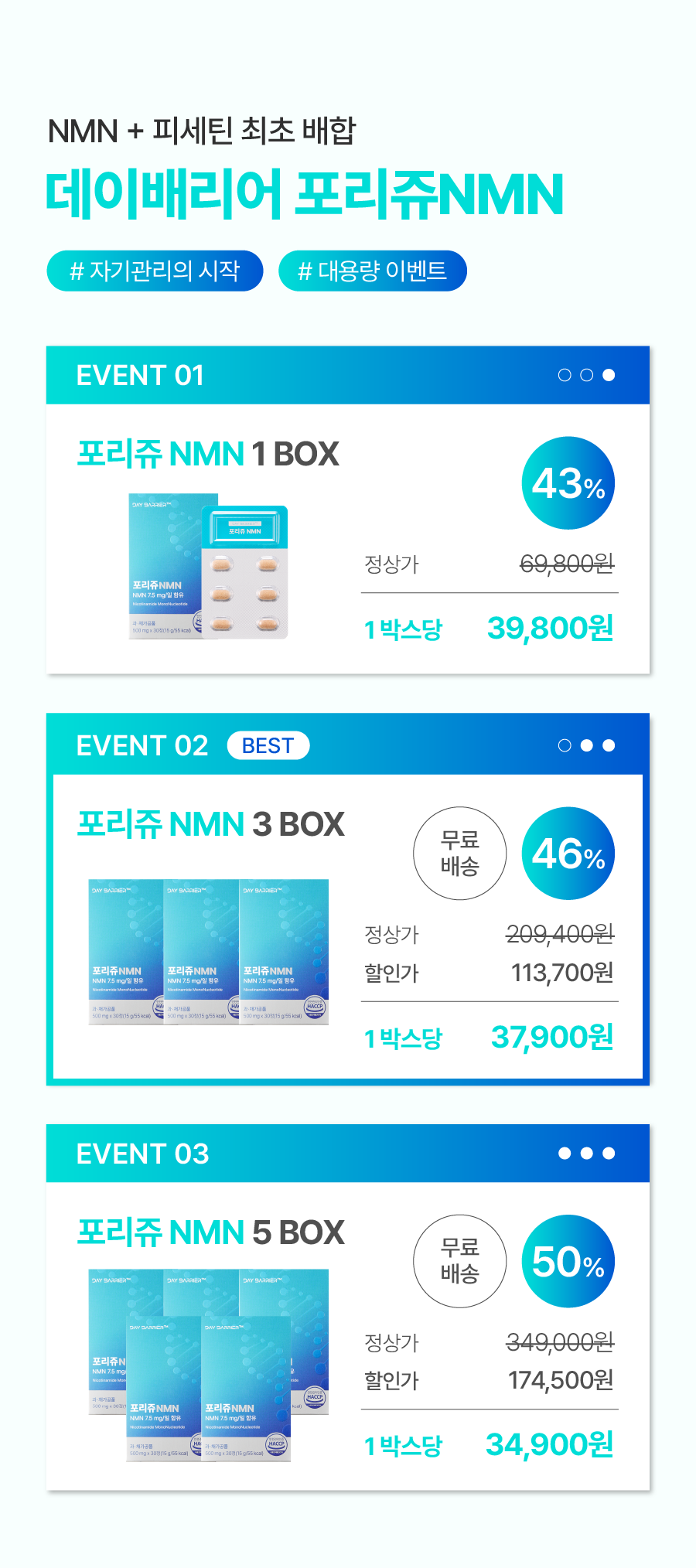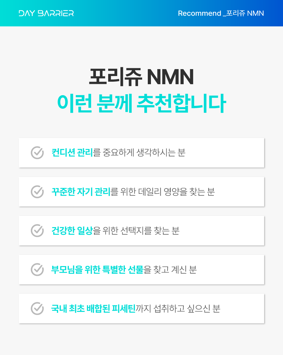 데이배리어는 '더 가볍고 더 건강한 내일을 위한 선택' 슬로건 아래 끊임없이 연구하며,모든 과정에 최선의 정성을 쏟아 겉모습만 고민하는 것이 아닌,내면까지 고민하는 이너뷰티 브랜드입니다.